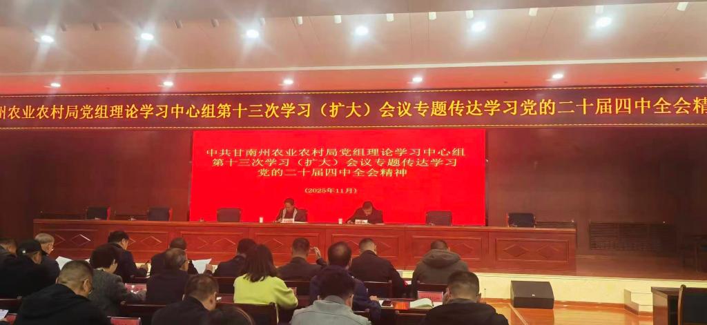 会议要求,要把学习宣传贯彻党的二十届四中全会精神,作为当前和今后一个时期的重大政治任务,精心组织开展好传达学习、宣传贯彻各项工作。全州农业农村系统干部职工要带头深入学习全会精神,把学习领会习近平总书记重要讲话和《建议》,同学习《习近平谈治国理政》(第五卷)、习近平总书记关于“三农”工作的重要论述和习近平总书记视察甘肃重要讲话重要指示精神等结合起来,深入领会重大意义、丰富内涵和精神实质,准确把握当前形势和任务,切实把思想和行动统一到党中央、省州委决策部署上来。要把会议精神的贯彻落实作为根本落脚点,高质量推进“十五五”农业农村系列规划编制,扎实推进农业农村年度重点任务落实,毫不放松巩固拓展脱贫攻坚成果,有效防范化解农业农村领域风险,确保全年和“十四五”任务圆满收官。要纵深推进全面从严治党,持续巩固拓展党纪学习教育和深入贯彻中央八项规定精神学习教育成果,努力营造风清气正、干事创业的政治生态。