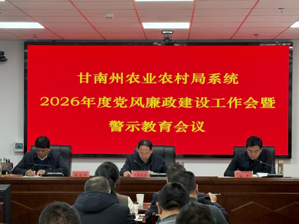 3月2日,州农业农村局召开局系统2026年党风廉政建设工作会暨警示教育会议,总结过去一年的工作,分析当前面临的形势,部署安排今年的重点任务,局党组书记、局长旦正道吉参加会议并讲话,局党组成员、州纪委监委派驻州农业农村局纪检监察组组长安平作指导讲话,局党组成员、副局长敏振西主持会议,局领导班子各成员,局属各单位主要负责人及局机关全体职工参加了会议。