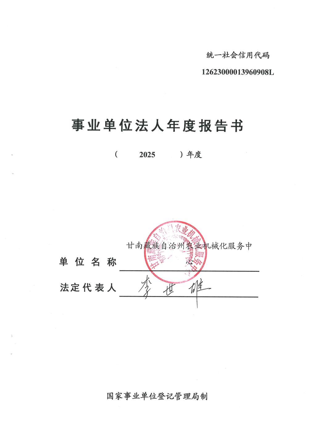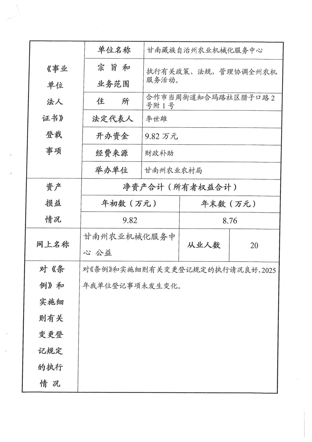 甘南藏族自治州农业机械化服务中心事业单位法人年度报告书