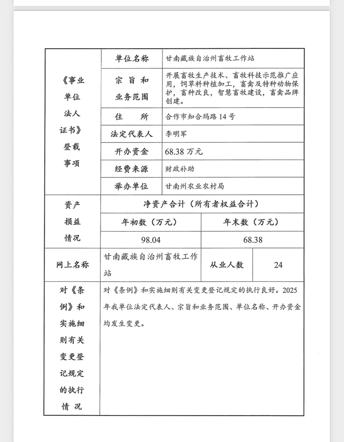 甘南藏族自治州畜牧工作站事业单位法人年度报告书