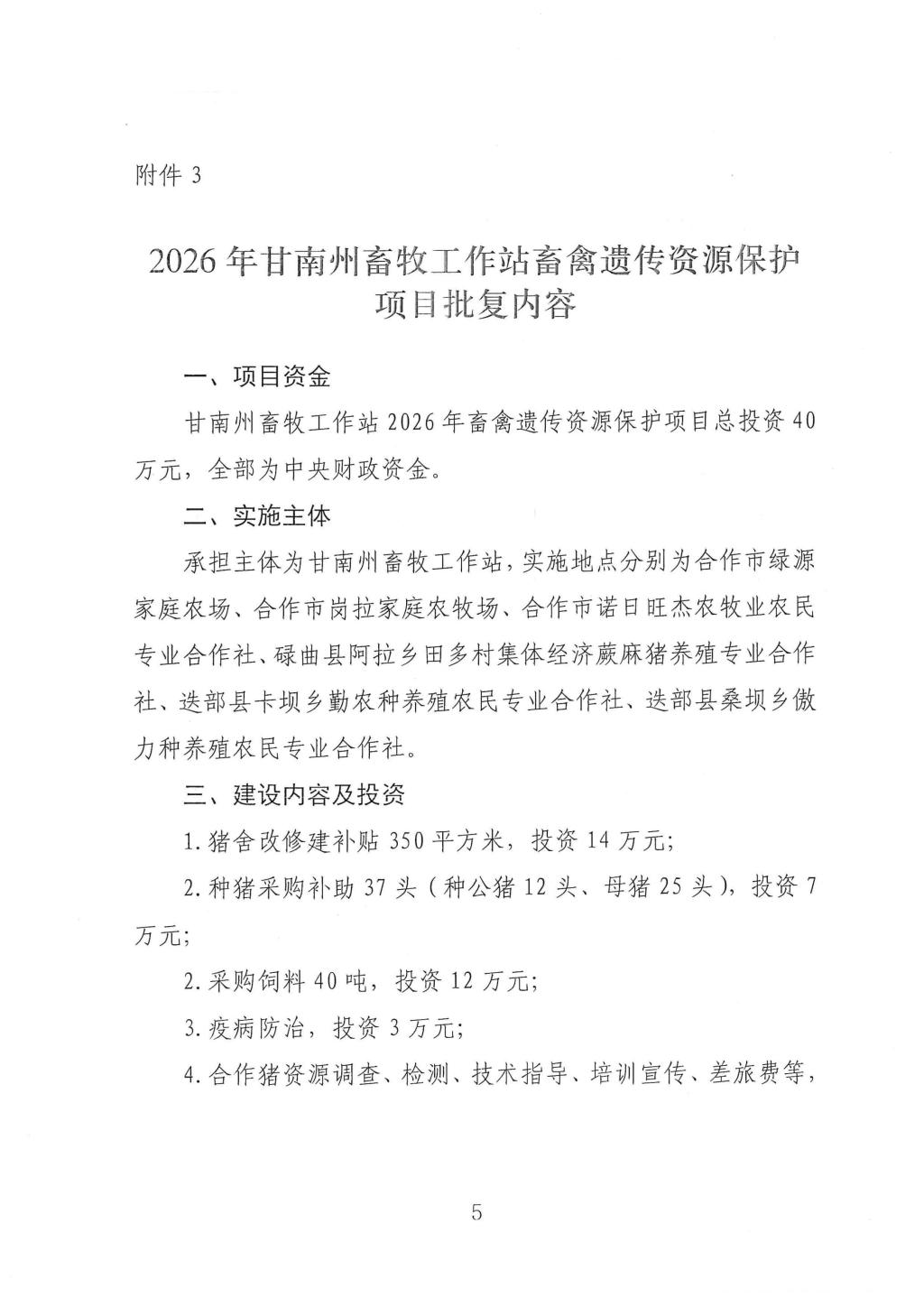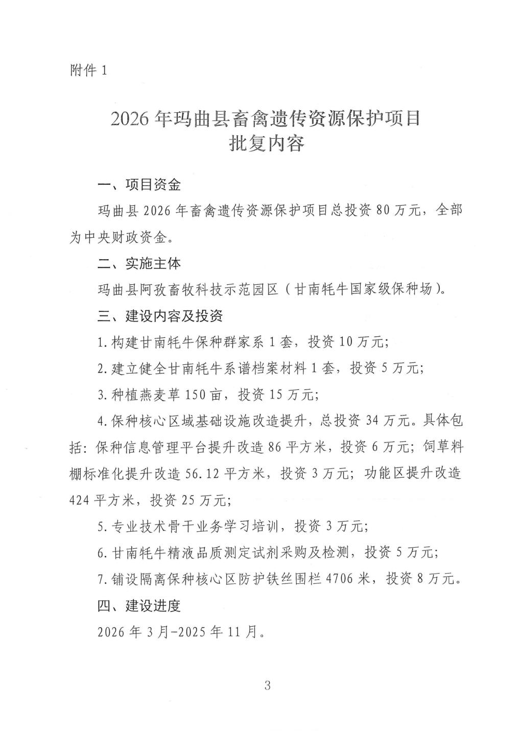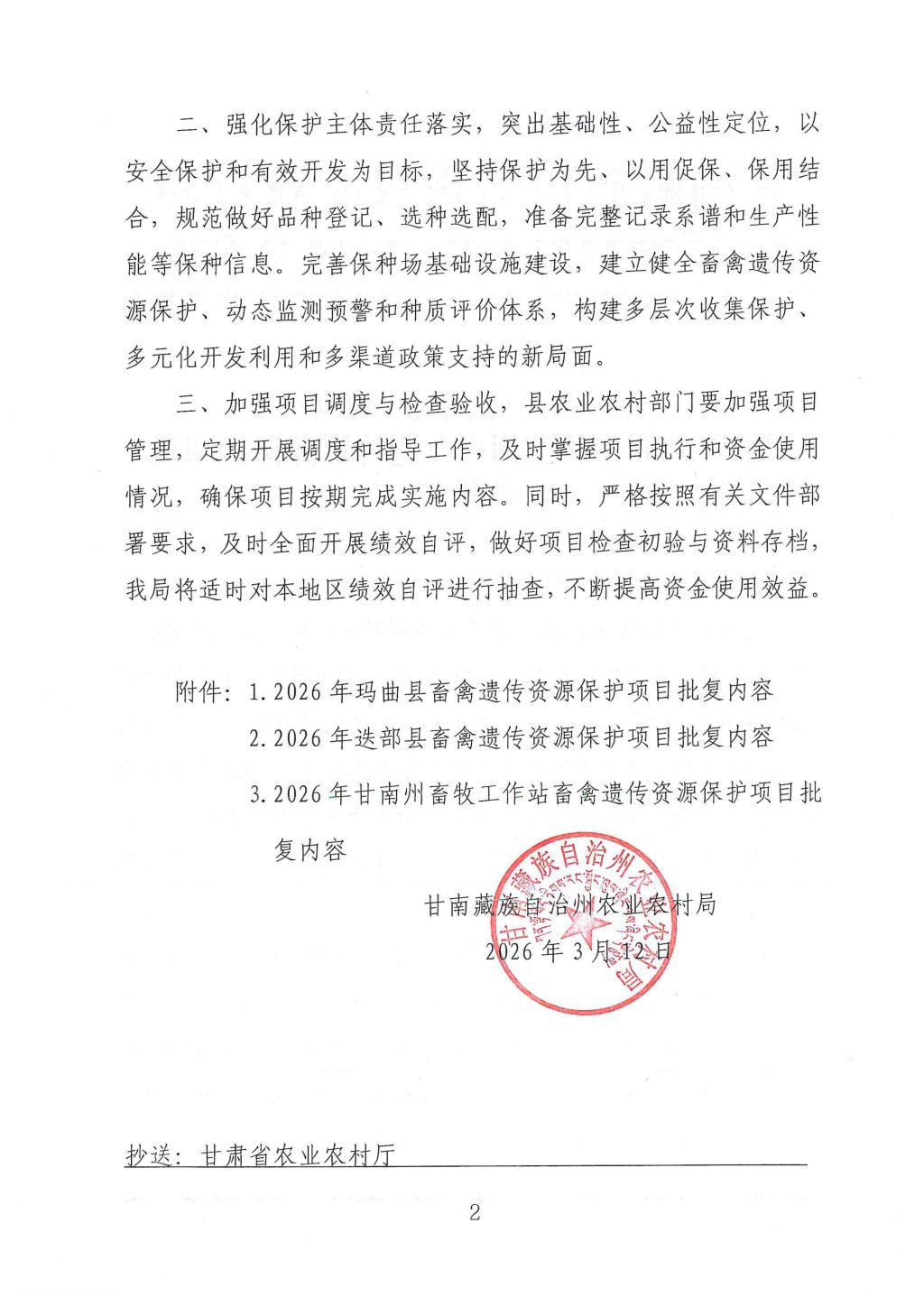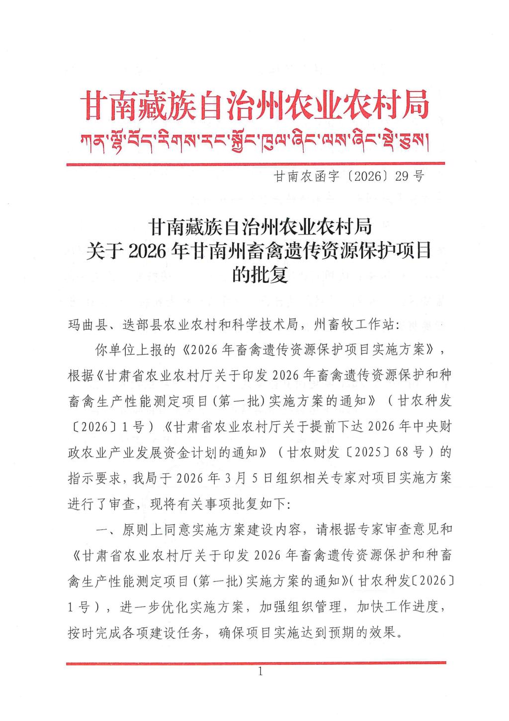 2026年甘南州畜禽遗传资源保护项目批复