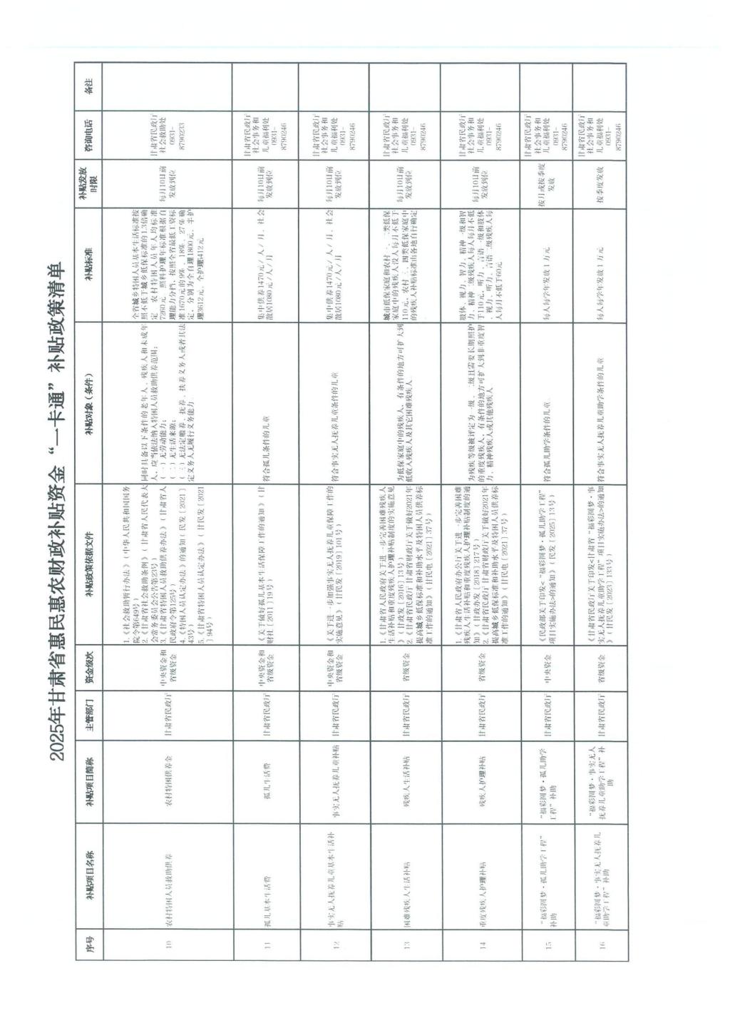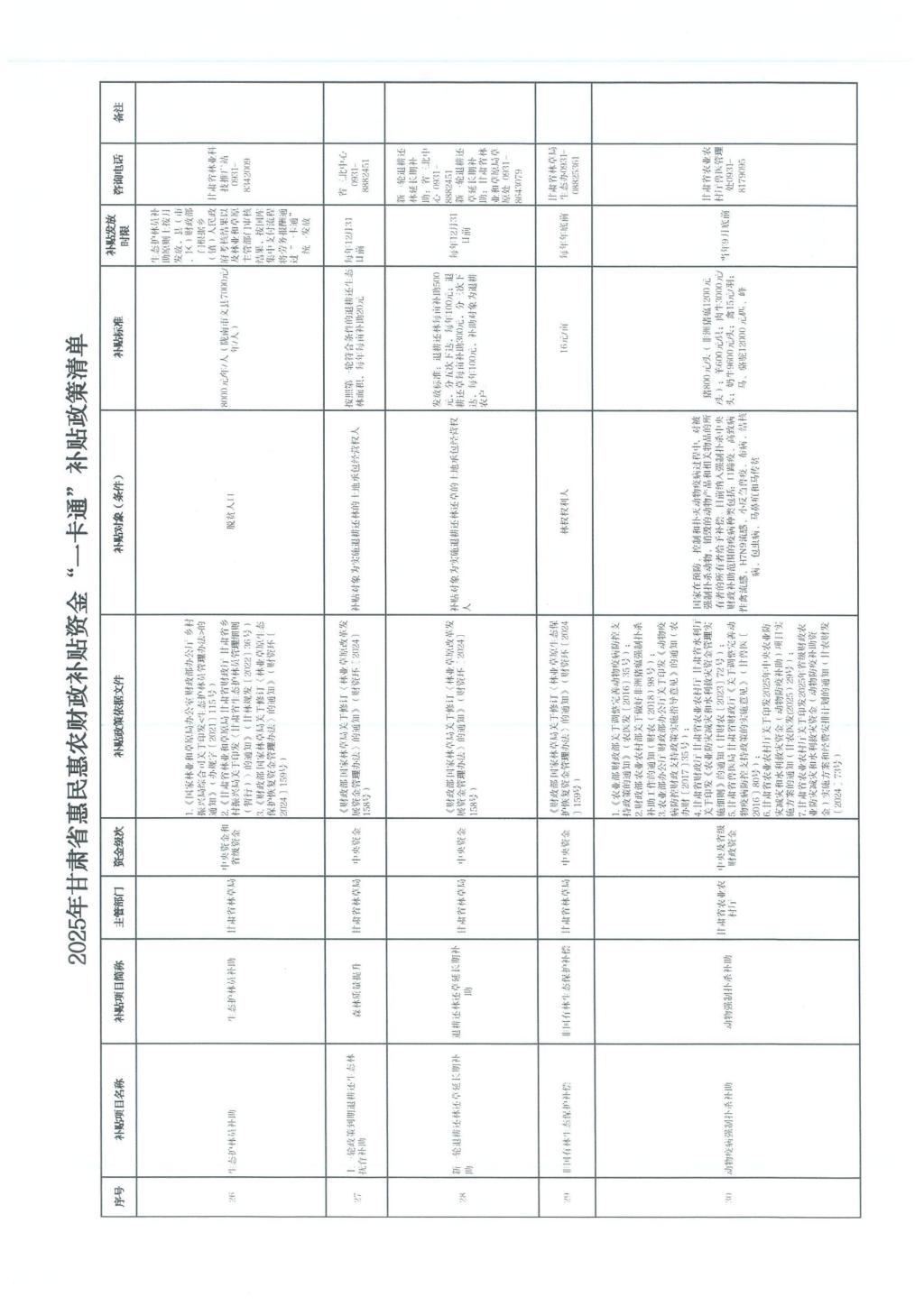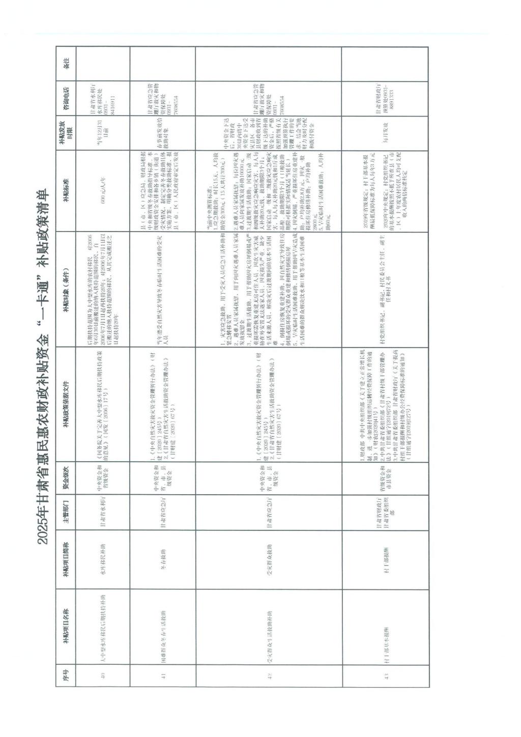 甘肃省财政厅关于公开2025年甘肃省惠民惠农财政补贴资金“一卡通”补贴政策清单的通知(甘财农【2025】53号)