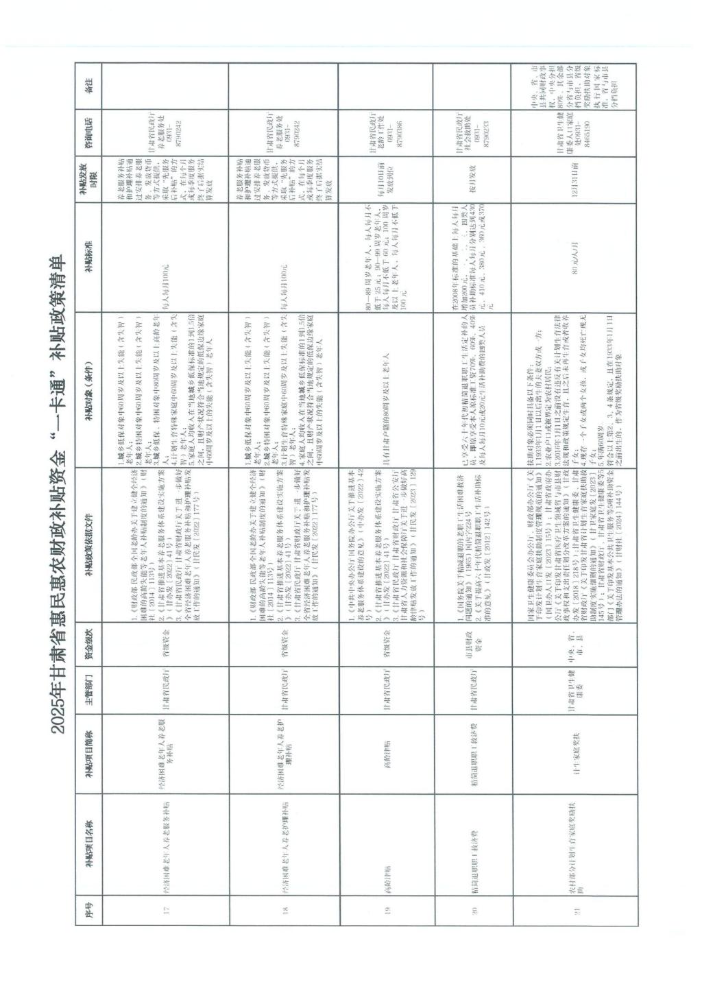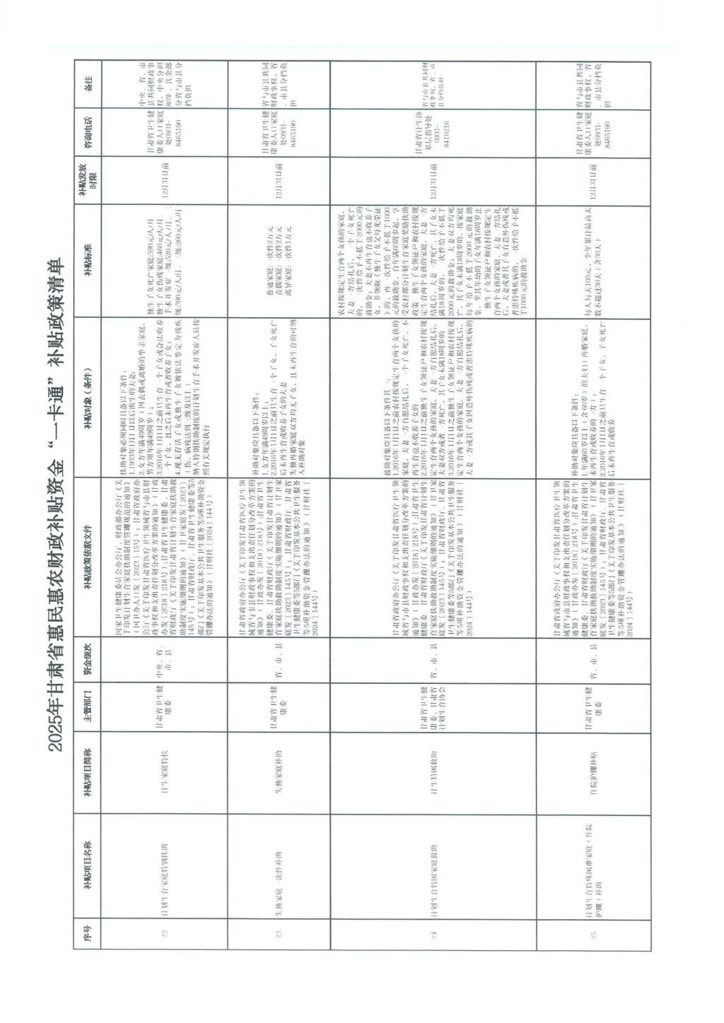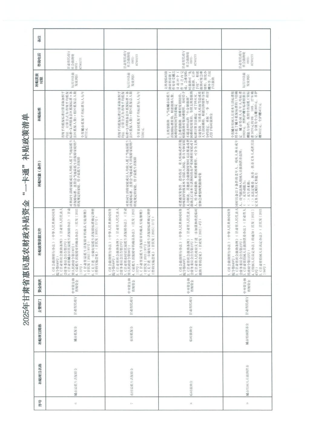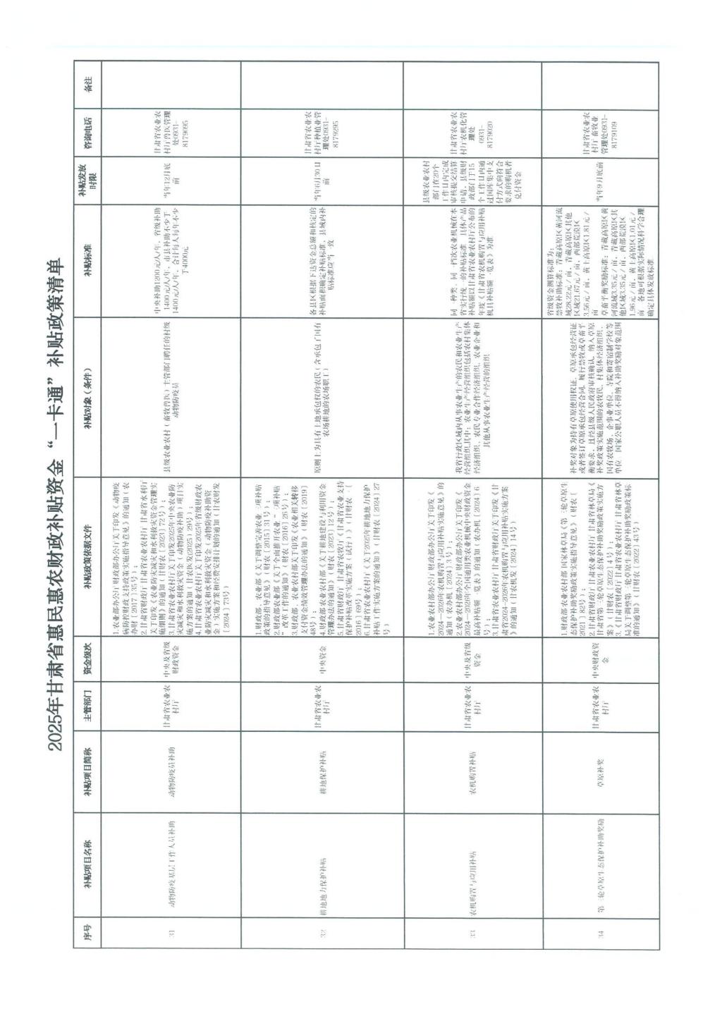甘肃省财政厅关于公开2025年甘肃省惠民惠农财政补贴资金“一卡通”补贴政策清单的通知(甘财农【2025】53号)